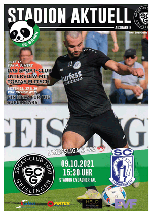 Samstag, 09. 10., - ‚Match day‘ im Eybacher Tal. Das Landesliga-Team des SC Geislingen empfängt den SC Stammheim. Die „Bären“ sind Favorit gegen die Mannschaft aus dem Stuttgarter Norden. Schon jetzt steht den Interessierten die Online-Version des Stadionmagazins zur Verfügung.